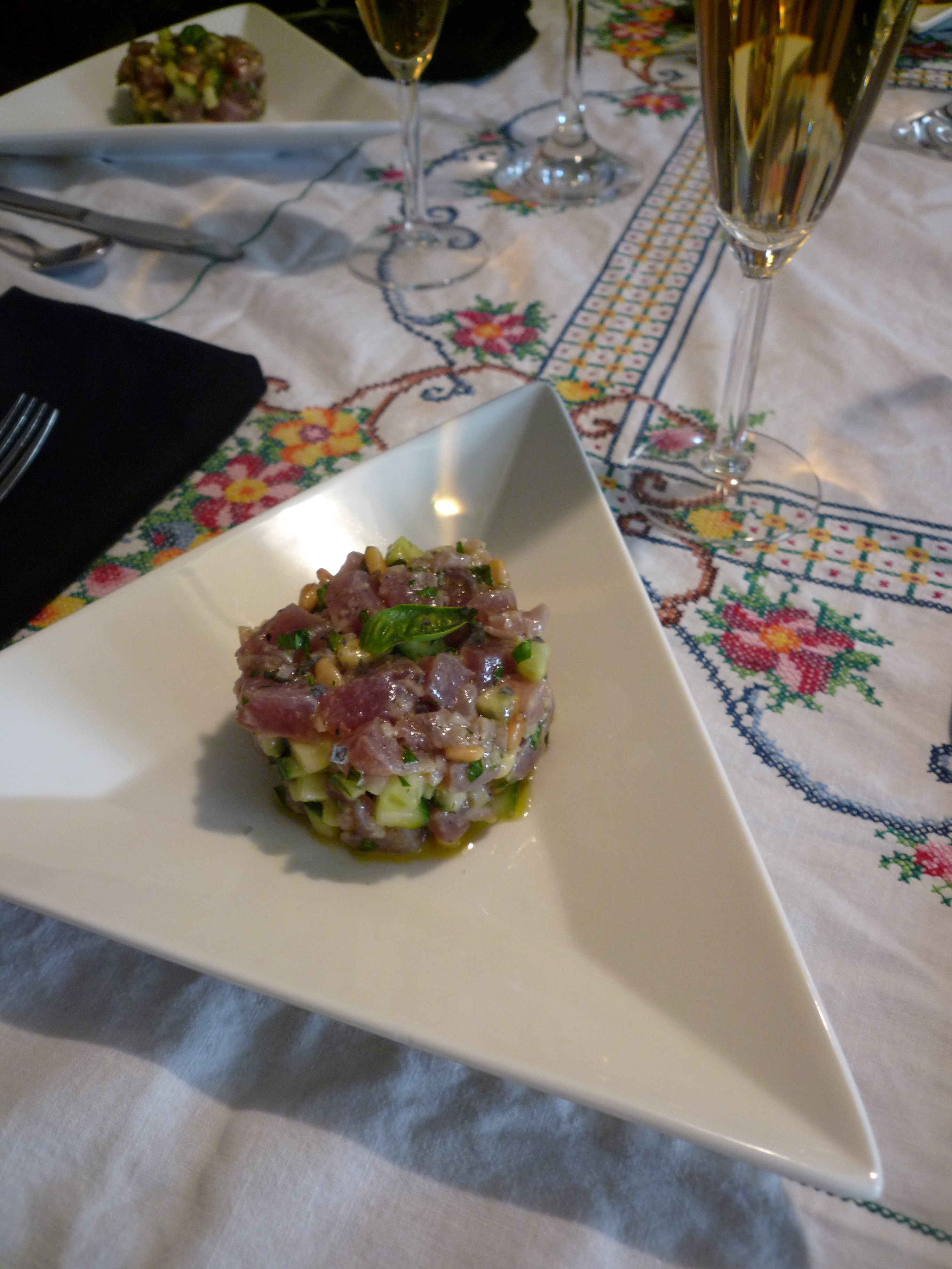 We had some friends over for the 4th and wanted to make something nice and fancy but that still had some element of the Independence Day barbecue thing going on. I started with my classic ahi tartare. It’s becoming a bit of a signature dish for me, it’s always good and everyone loves it.