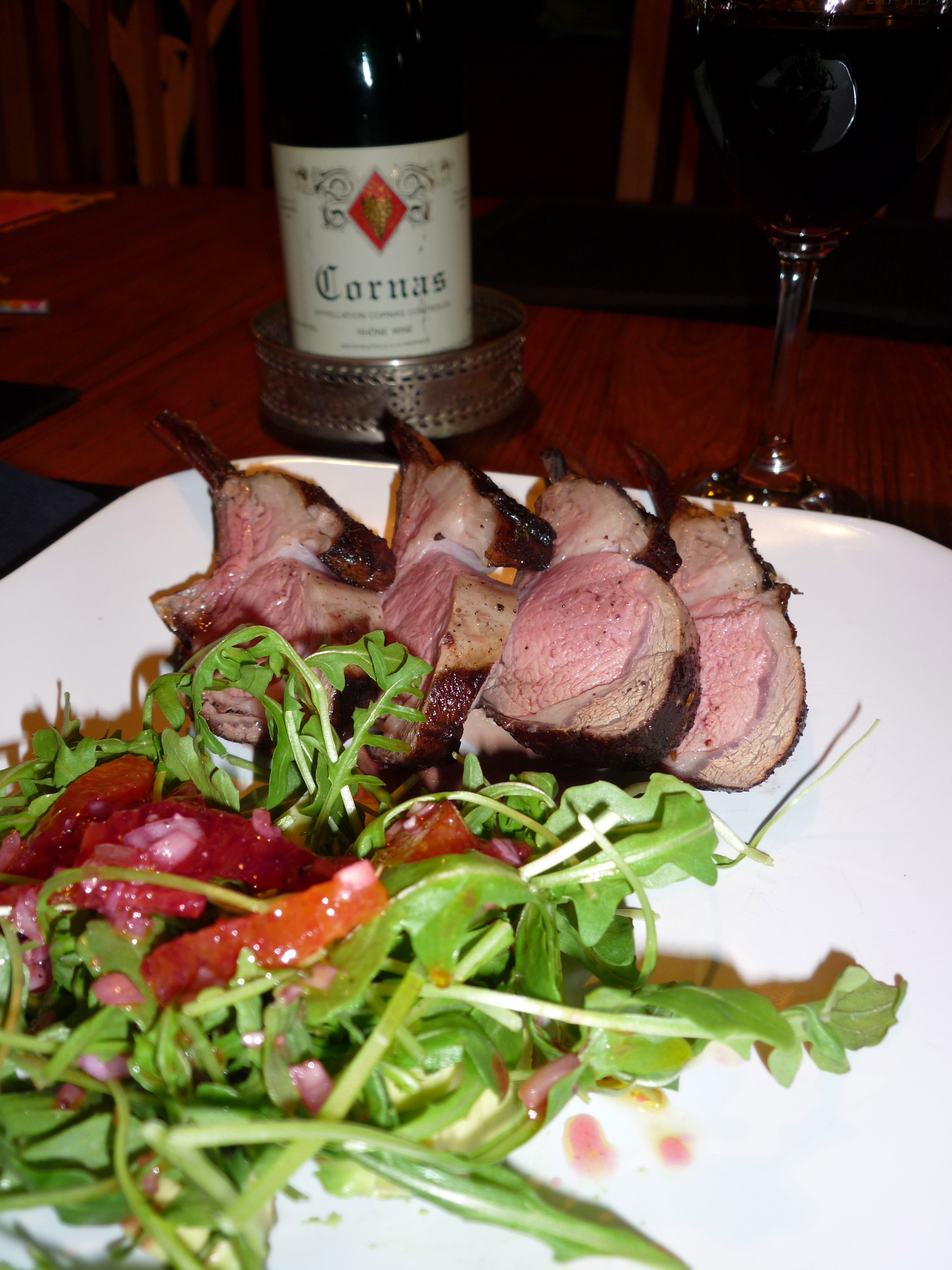 Since I was flying blind on this one, I went to Epicurious and found a recipe that didn’t only look good but was over the top with flavor and a bit eccentric: Spice-Coated Rack of Lamb with Arugula, Avocado, and Blood Orange Salad. WOW!