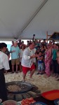 He shed the helmet and gear and put on a chef’s coat over his wet clothes and got to work! There was a freak storm that came through Grand Cayman on Friday that brought higher than usual tides so the surf was coming right up to the tents. They set the paella pans up on fires under the tents rather than out in the sun further down the beach. That worked out, I was sweltering last year and I thought the sous chefs were going to collapse from the heat!