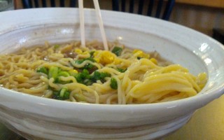 I am a noodle whore. A noodle addict. I love noodles. In any form, but especially from the general Asian part of the world and floating in pork-based broth. Ramen makes me so happy. For my 40th birthday, we waited nearly 2 hours for ramen at Orenchi and I was so thrilled to do it. One of my dream vacations is to attend the Ramen Festival in Japan. The horrible thing about my addiction is that it has been hard to feed. There was no ramen in Santa Cruz. Unless I took the two days to make it and destroyed my kitchen in the process, there was no ramen to be had….until now.