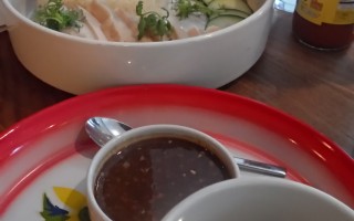 Chicken Fat Rice. Yep, that’s what it is. Perfectly juicy chicken, rice fried up in chicken fat so it’s shiny and oh so good and some of Pim’s secret sauce. This was my son’s favorite despite the fact that he accidentally ate an entire Thai chili. That blue flower lemonade disappeared fast.