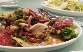 We started with shared plates of Seared Calamari with olives, blood oranges, mint, escarole, and almonds. These weren’t your bar-bites-fried-bits of squid, they were perfectly cooked, not breaded, dressed beautifully bits of squid. The orange and almonds were a wonderful touch of acid and crunch. This was actually my favorite dish of the night. My tablemates got the Shaved Brussels Sprouts parmigiano, walnuts, fresh herbs and devoured a rather large portion so I’m assuming those worked well too!