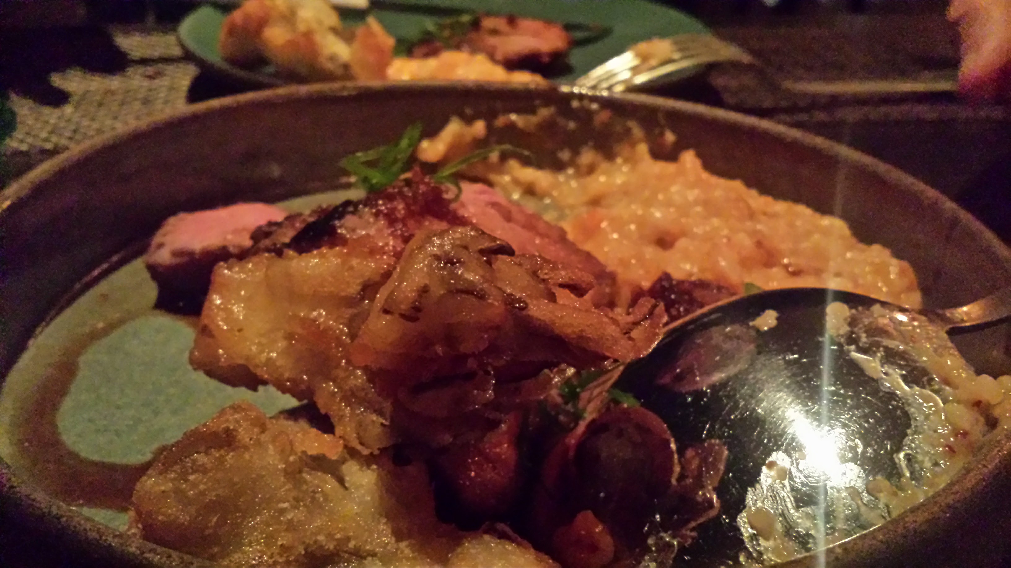 The pork ribs are paired with Indian flavors and I had a hard time with that one. Pork + Indian…maybe not. Small issue though, everything else was great. An amazing surprise was the brussel sprouts. We didn’t order these, I HATE brussel sprouts but the chef sent them out. I thought I’d be polite and at least try them. I’ve never had a brussel sprout in my life that I liked….until now. Holy cow were these good: smoked garlic, crispy pancetta, maple glaze. I ate half the bowl. Then asked for the recipe!