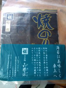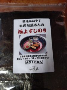 We grabbed albacore, ahi, tobiko, ikura, assorted pickles. We already had rice and the other fixings. But the pièce de résistance was the seaweed my husband brought back from a recent trip to Tokyo. This was the not-as-good package. We haven’t busted open the $1/sheet seaweed yet. This was about 1/2 that price I believe and it was awesome. Crisp and toasty. I’m not sure how I’ll go back to the seaweeed we can get here :( And I don’t know what will be worthy of the fancy stuff!