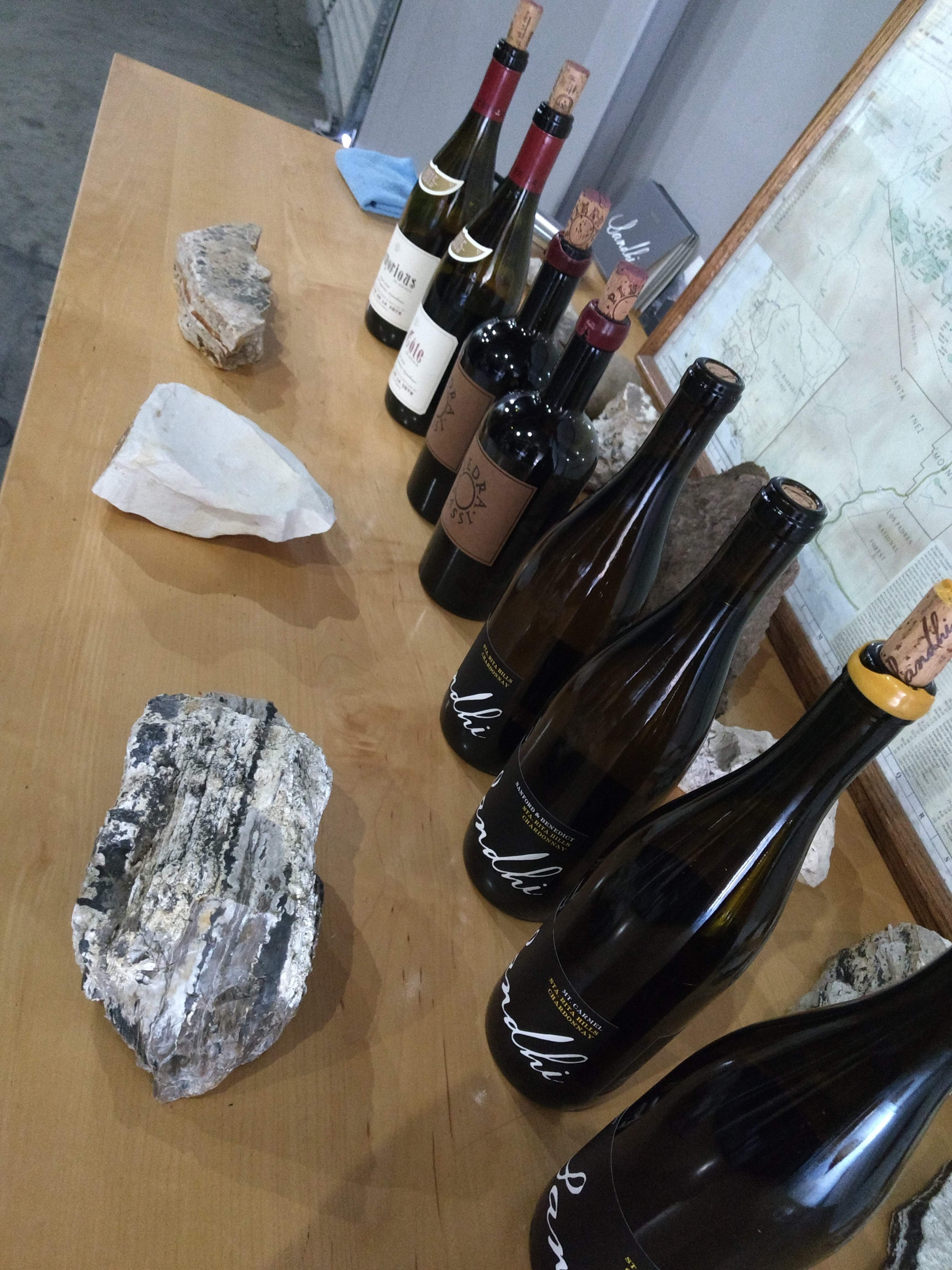Julia came out and had us hop in her car and we drove the quick few minutes out of the wine ghetto and into the vineyards. We made a quick stop at the giant hillside of diatomaceous earth which was fascinating. A cliff of desiccating, chalk-like, former ancient sea creatures that weigh nothing. A football sized chunk of this rock was *maybe* a pound? After handling it I felt like I’d just been to the climbing gym–looked it too, my shoes covered in a white layer.